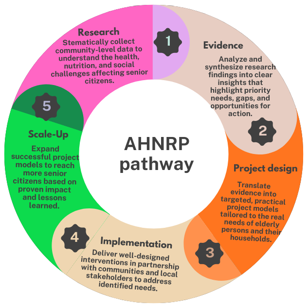 The Aging, Health & Nutrition Research Program (AHNRP) is a core program of Hope to Live Charity Organization designed to ensure that all our interventions for senior citizens are evidence-based, relevant, and responsive to real community needs.